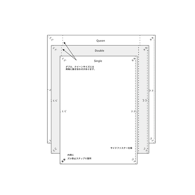 ・ダブルサイズ、クイーンサイズには両端に接ぎ合わせが入ります。ご了承くださいませ。