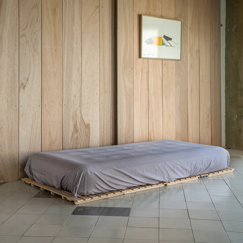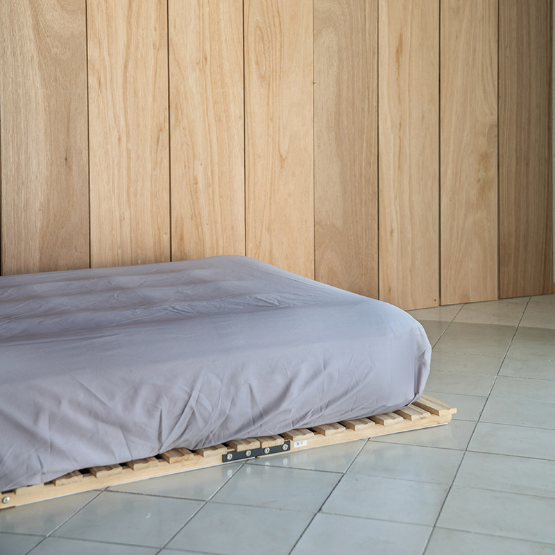 京都府・伏見の清冽な伏流水で何度も洗い、ふんわりとやわらかく改質された綿は、洗濯や日干しによる乾燥でその質感と機能が復元し、半永久的に続きます。