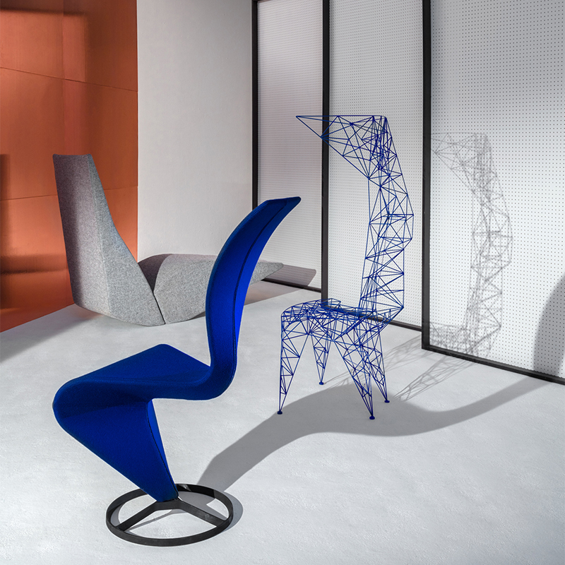彫刻のようなフォルムを持つ奇抜なデザインでありながら、人間工学に基づいた座り心地の良さがこのチェアの特徴です。