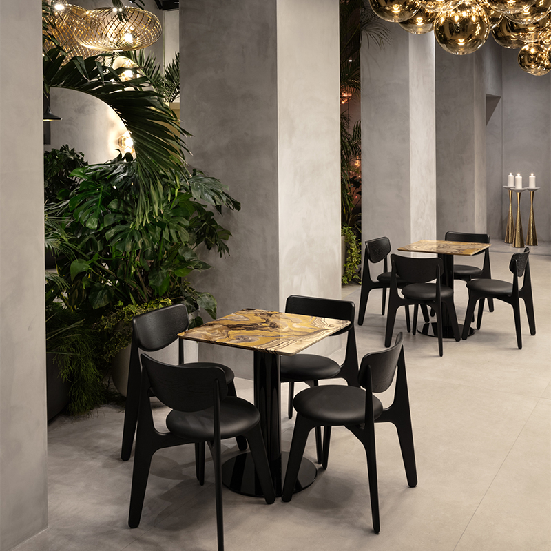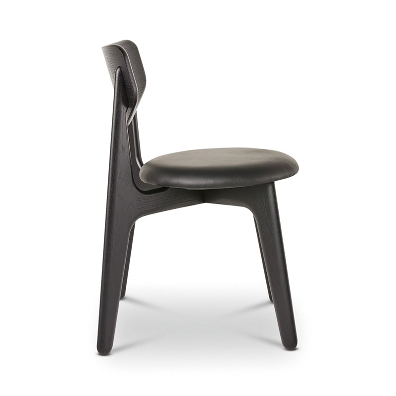 力強さも感じる一方で、柔らかなシートパッドを備え、カフェ等のパブリックスペースからオフィス、レジデンスに至るまで、幅広いシーンで利用できる優しい座り心地のチェアです。
