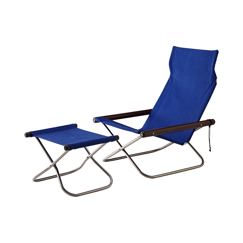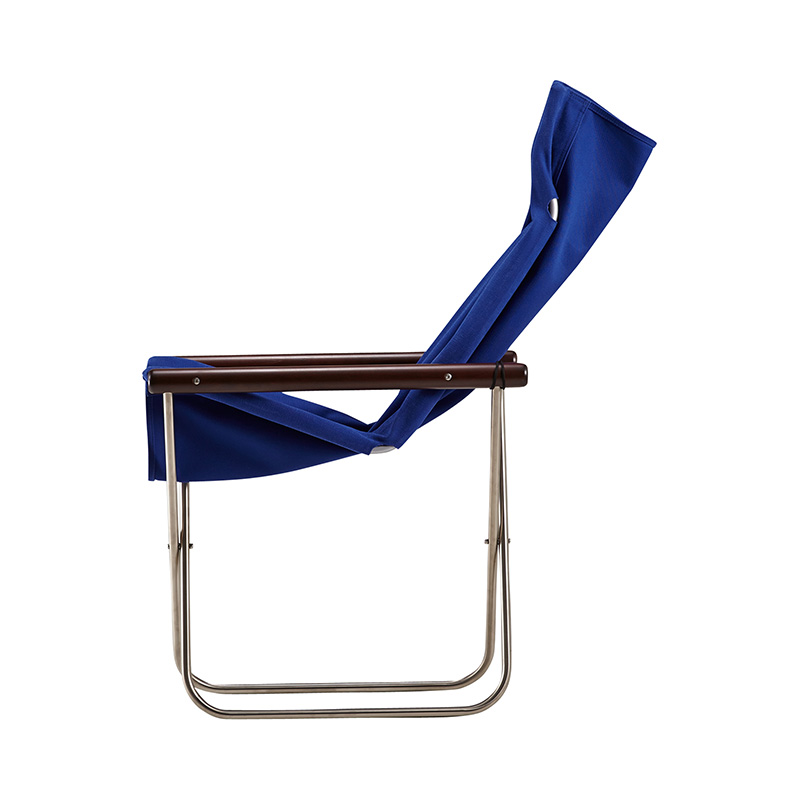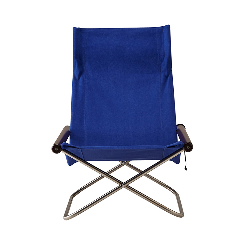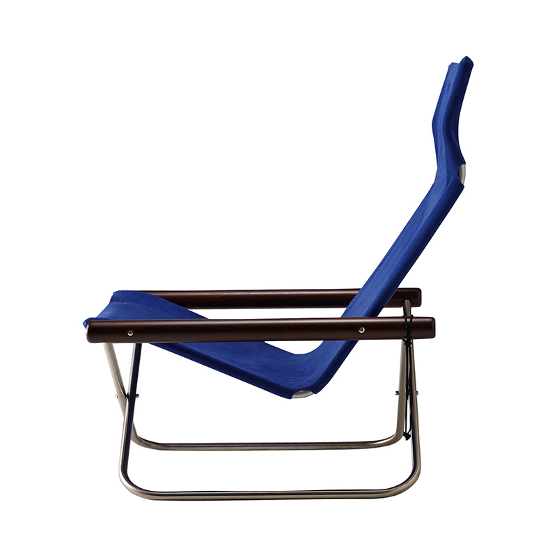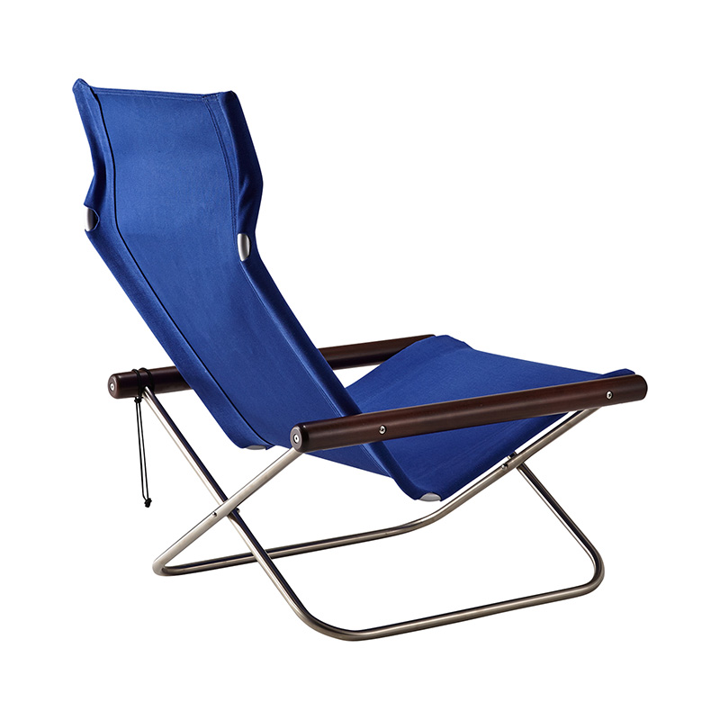 1970年、デザイナーの新居 猛(にい たけし)によって生み出された「ニーチェアエックス」。1950年代から折り畳み椅子づくりをはじめ、試行錯誤の末たどり着いたのが、脚部のX構造でした。さらに木製の肘かけ、シートには綿の厚織生地を採用。すべてが相まって、快適な座り心地を実現しています。その後に続く「ニーチェアエックスシリーズ」の原点であり、生涯折り畳み椅子の開発に取り組んだ新居の集大成といえる製品です。