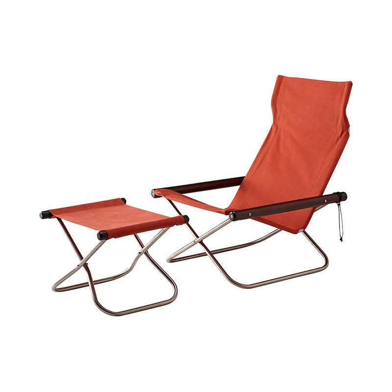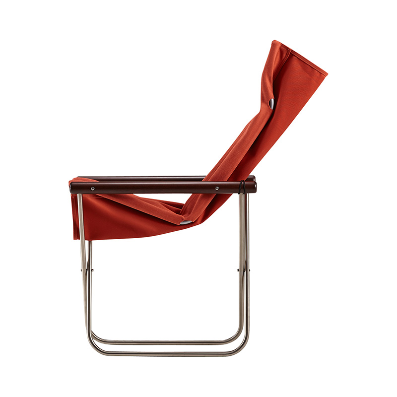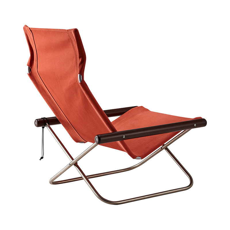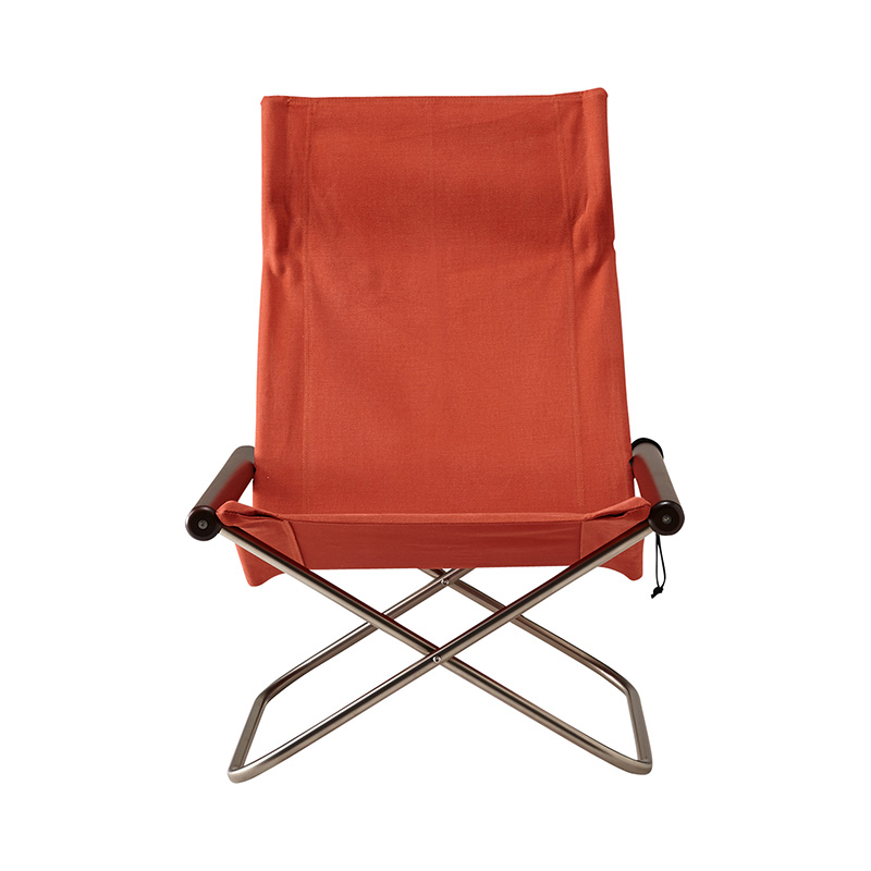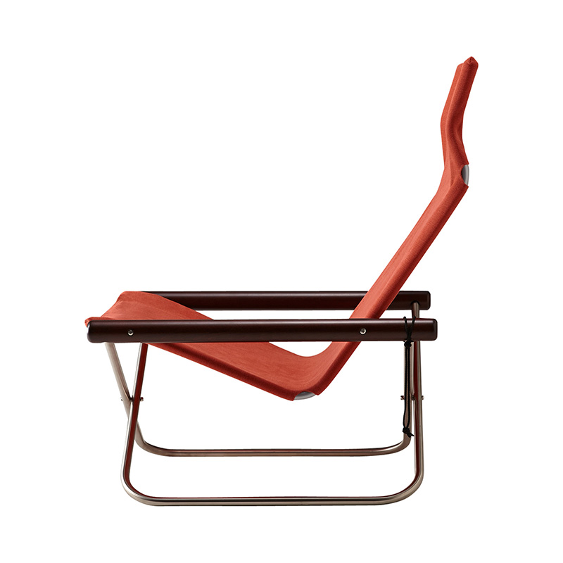 1970年、デザイナーの新居 猛(にい たけし)によって生み出された「ニーチェアエックス」。1950年代から折り畳み椅子づくりをはじめ、試行錯誤の末たどり着いたのが、脚部のX構造でした。さらに木製の肘かけ、シートには綿の厚織生地を採用。すべてが相まって、快適な座り心地を実現しています。その後に続く「ニーチェアエックスシリーズ」の原点であり、生涯折り畳み椅子の開発に取り組んだ新居の集大成といえる製品です。