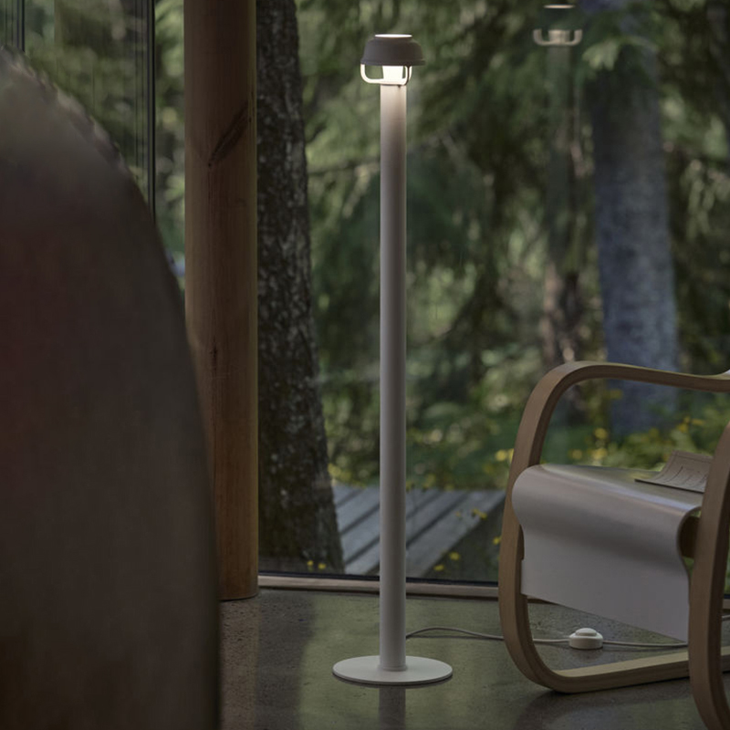 すっきりとコンパクトで持ち運びも簡単な使い勝手の良いフロアスタンドは、アームチェアの傍らを心地よく照らし、インテリア全体をひきたてるアクセントになります。