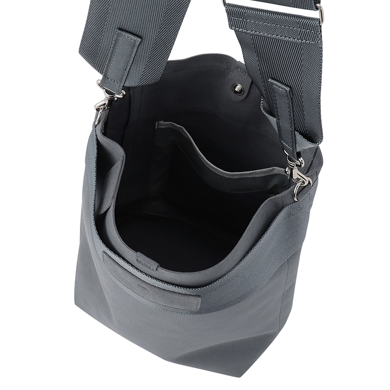 マイクロファイバースエードと極太なナイロンテープを使用したミディアムショルダーバッグ。