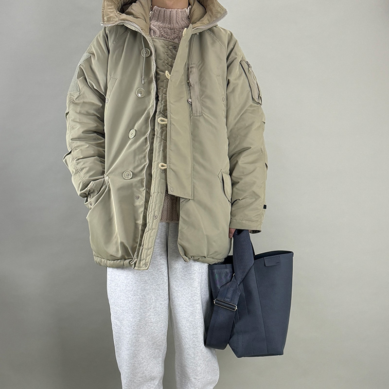 革以外の素材を指す“雑材” をメインにし、気軽さと実用性、ファッション性を備え持った大人のカジュアルスタンダードを追求するブランドです。マイクロファイバースエードと極太なナイロンテープを使用したミディアムショルダーバッグ。