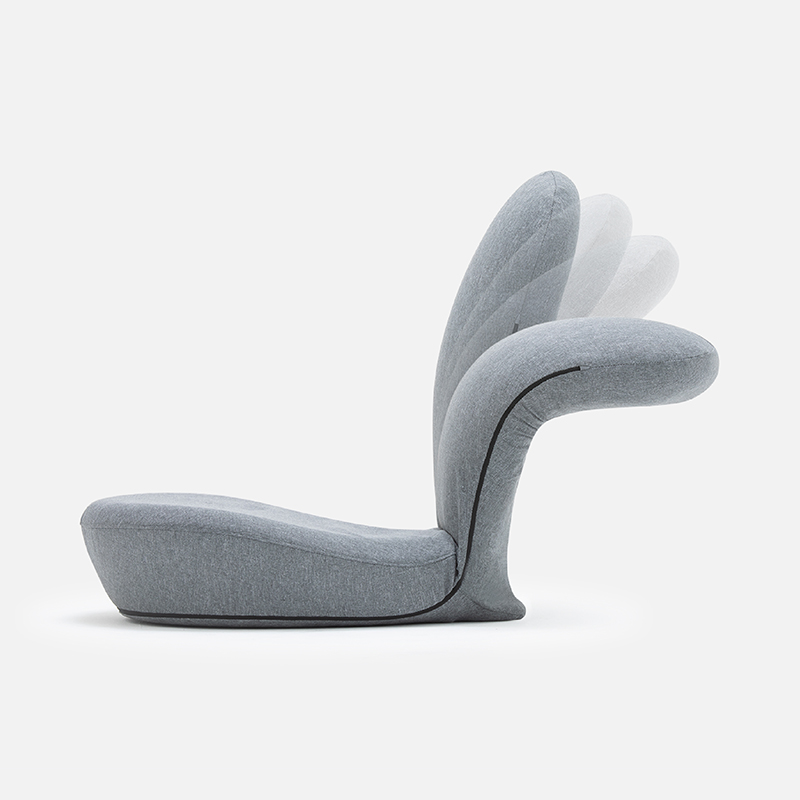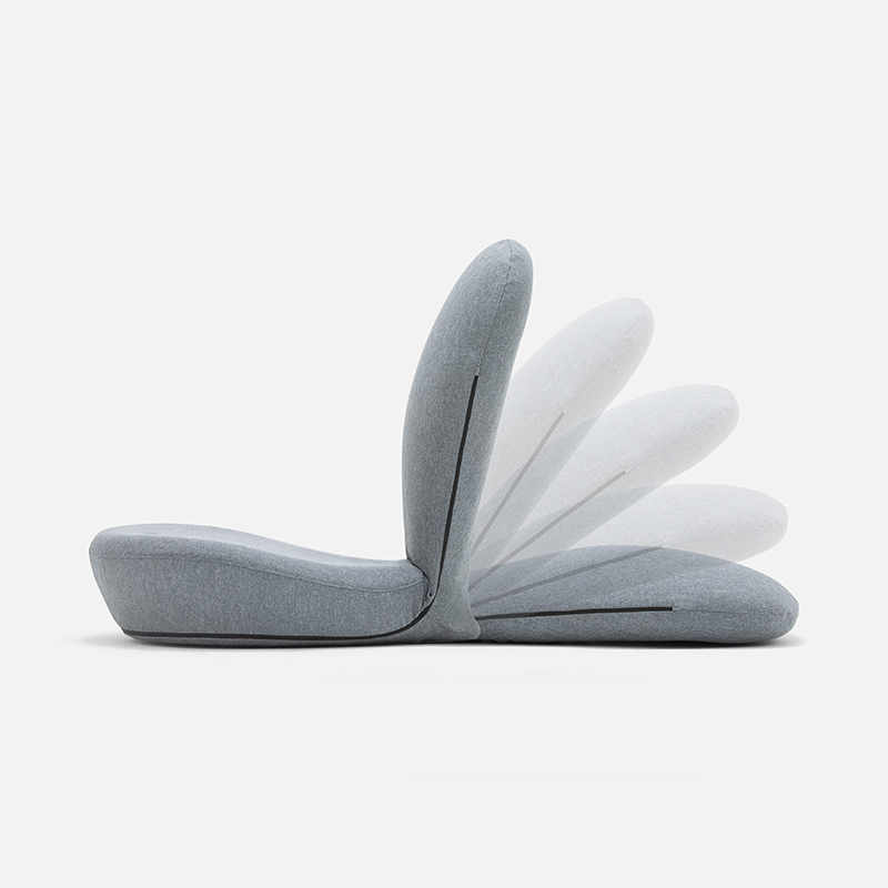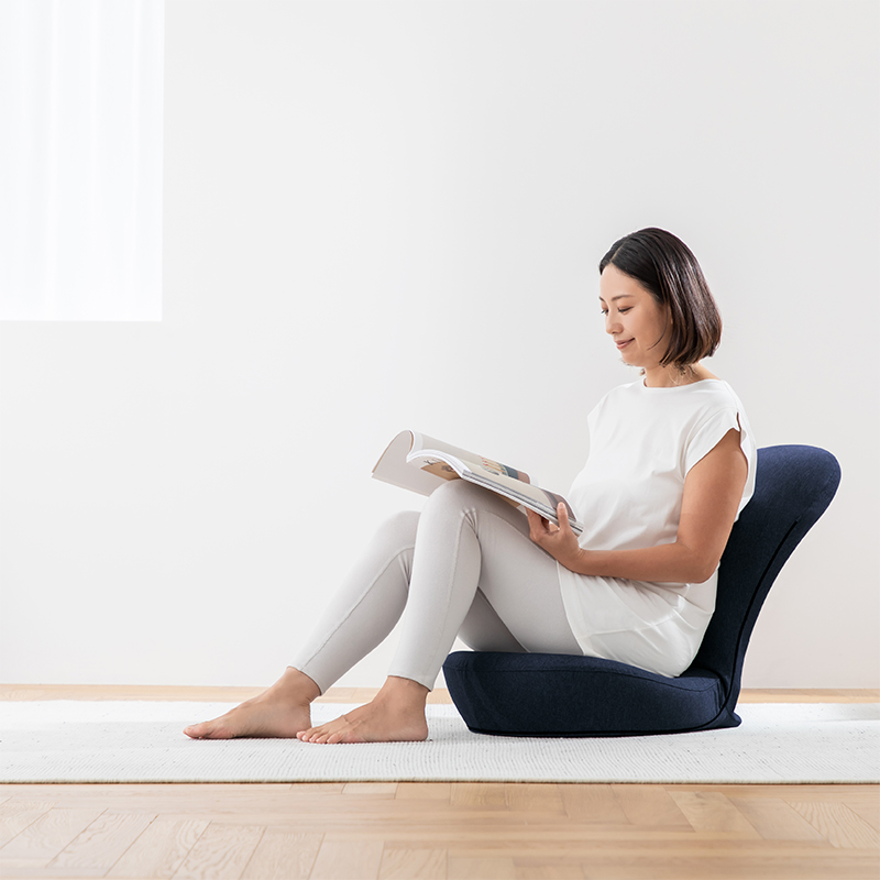 腰と背中の2ヶ所に搭載したリクライニングギアにより、シーンにあわせて様々な座り方ができます。休息したい時には全身を伸ばしたストレッチができる座椅子へと変身。集中もリラックスもできる居心地のよい座椅子が暮らしに溶けこみます。