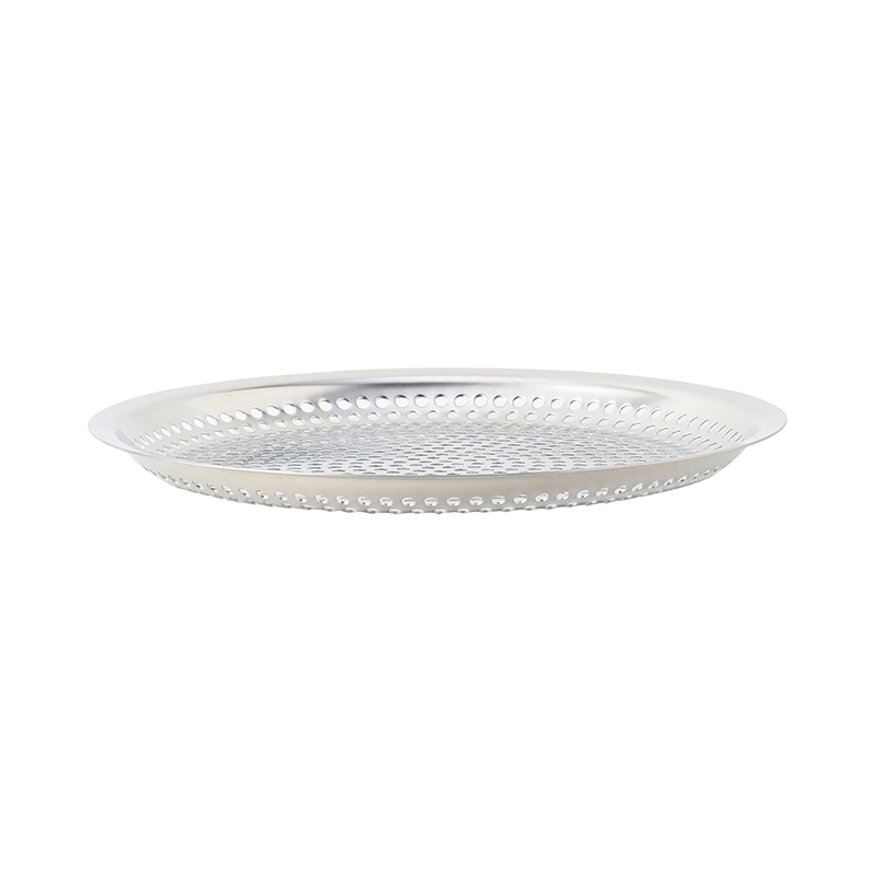 conには「共に」という意味があり「conte」は、職人の手と共につくられる道具でありたいとの思いを込めた名前です。底面積の大きい浅型パンチングトレイです。