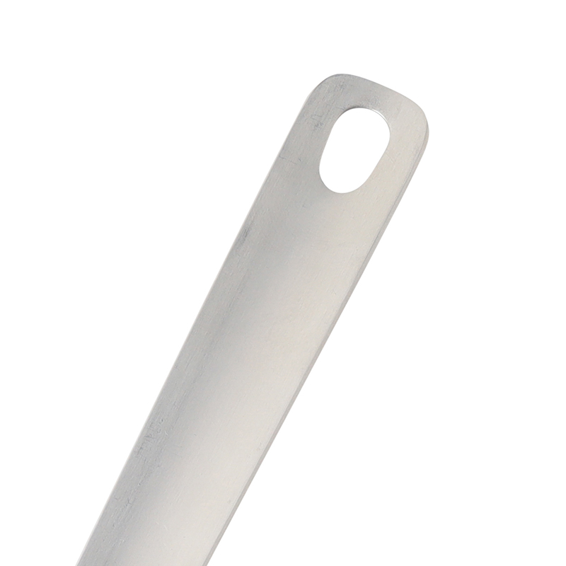 conには「共に」という意味があり「conte」は、職人の手と共につくられる道具でありたいとの思いを込めた名前です。手前面は鍋底に、尖った注ぎ口は届きにくい鍋の角にフィットして「すくいやすく」、なだらかな曲面はつたってこぼれ落ちにくく「注ぎやすい」、対称形状で利き手に関係なく使えるシンプルなレードルです。