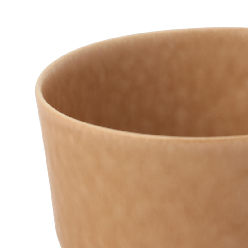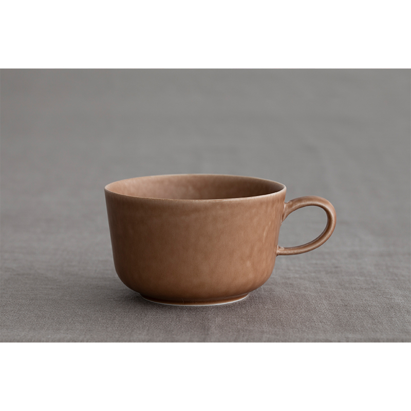 卓越したクラフトマンシップによる安定した丈夫なつくりと、お料理を引き立てるすっきりとした清潔なデザインは、プロフェッショナルからも高い支持を集め、現在では多くのレストランやカフェ、ホテルなどで採用されています。普段使いに最適な真ん中のサイズのカップ。 コーヒーや紅茶を入れて飲むのに丁度いい大きさです。 日本茶との相性も良い伊羅保釉特有の質感が特徴です。