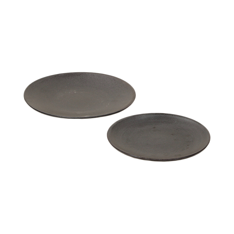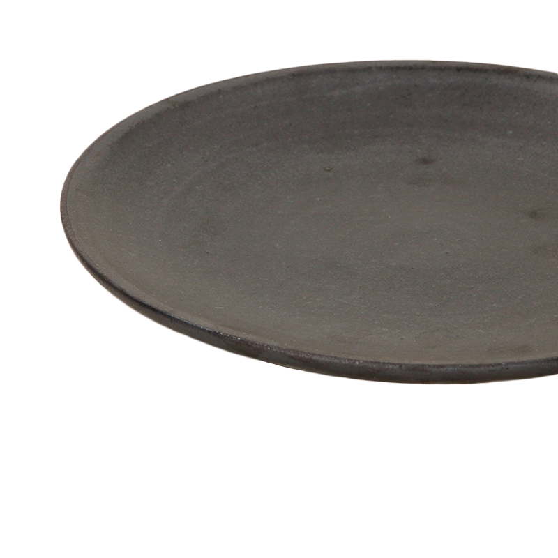 熟練した職人の手作業で成型、削り、施釉作業を行い、一枚一枚丁寧に作られています。美しいマットブラックの色合いが魅力で、和・洋・中問わずお料理が映える一枚です。