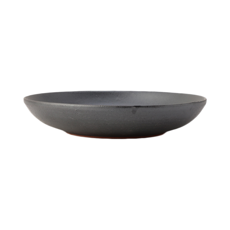 熟練した職人の手作業で成型、削り、施釉作業を行い、一枚一枚丁寧に作られています。美しいマットブラックの色合いが魅力で、和・洋・中問わずお料理が映える一枚です。