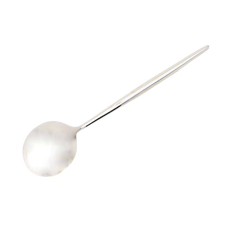 細長い独特な形状の柄は中央にある膨らみが持ったときに指にフィットし、程よい重さがあるので安定感があります。人間工学に基づいて設計されたデザインは、見た目に美しいだけでなく使い心地も優れています。カジュアルにもおもてなしにもお使いいただけます。