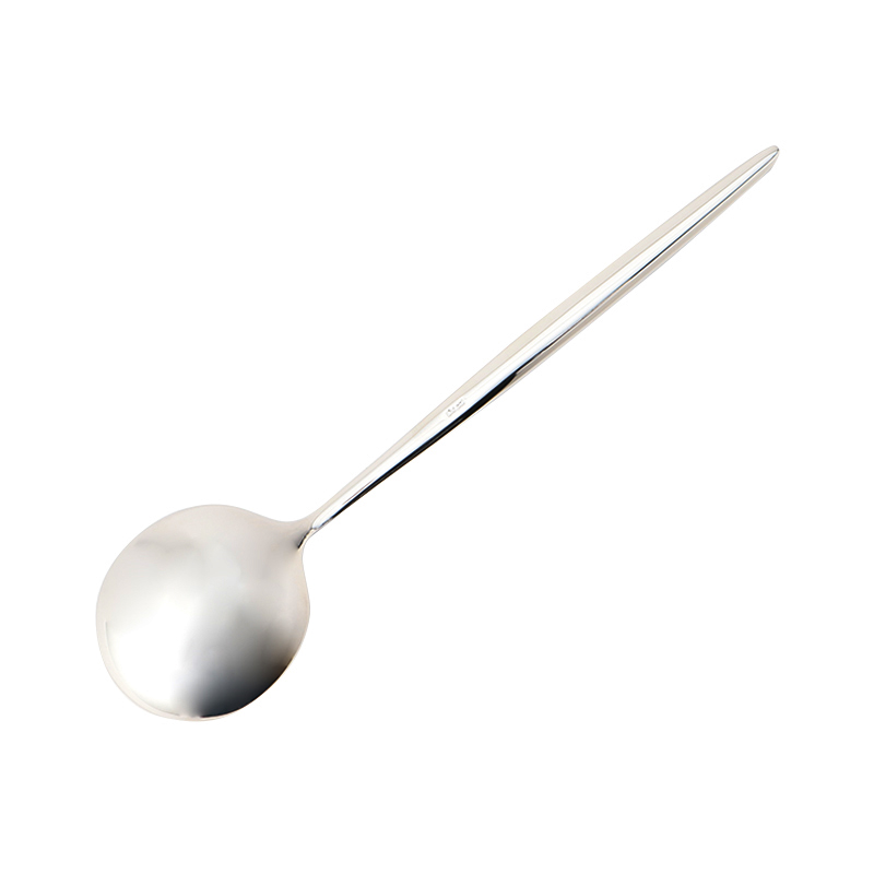 細長い独特な形状の柄は中央にある膨らみが持ったときに指にフィットし、程よい重さがあるので安定感があります。人間工学に基づいて設計されたデザインは、見た目に美しいだけでなく使い心地も優れています。カジュアルにもおもてなしにもお使いいただけます。
