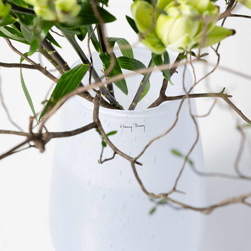 1972年にベルギーの小さな街で、旅と読書とモダンアート、ガラスをこよなく愛するHenry Deanによって設立されたブランド。彼は、日々の生活の中でふと浮かんだ映像をガラスによって表現してきました。現在は引退し、フランスの田舎町で静かな生活を送りますが、その情熱は二人の息子と娘に受け継がれています。古くからガラス生産が盛んな東欧の工場で、熟練した職人たちの吹きガラス製法によってひとつひとつ丁寧に作られた花器は、手に取ると冷たいガラスの中にハンドメイドのあたたかな温もりが感じられます。
