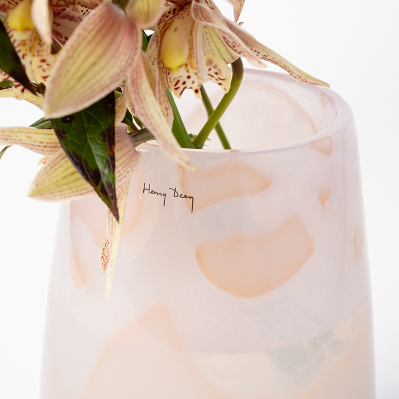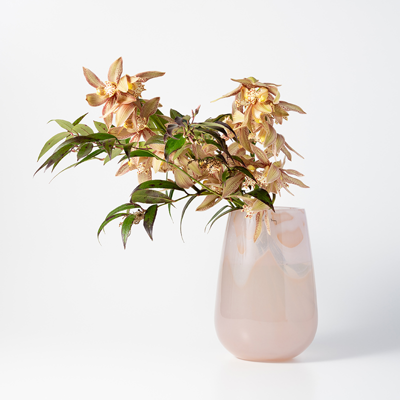 1972年にベルギーの小さな街で、旅と読書とモダンアート、ガラスをこよなく愛するHenry Deanによって設立されたブランド。彼は、日々の生活の中でふと浮かんだ映像をガラスによって表現してきました。現在は引退し、フランスの田舎町で静かな生活を送りますが、その情熱は二人の息子と娘に受け継がれています。古くからガラス生産が盛んな東欧の工場で、熟練した職人たちの吹きガラス製法によってひとつひとつ丁寧に作られた花器は、手に取ると冷たいガラスの中にハンドメイドのあたたかな温もりが感じられます。ヨーロッパでスタンダードなサイズの「Stromoboli S」は、日本でも多くのフラワーレッスンで使用されています。大きめのブーケもすっぽりと入るので、花のある暮らしを楽しみたい人におすすめです。