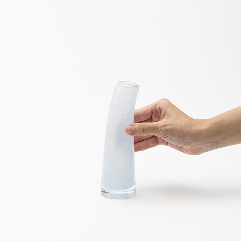古くからガラス生産が盛んな東欧の工場で、熟練した職人たちの吹きガラス製法によってひとつひとつ丁寧に作られた花器は、手に取ると冷たいガラスの中にハンドメイドのあたたかな温もりが感じられます。