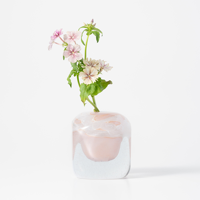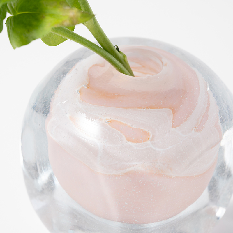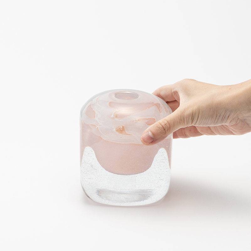 古くからガラス生産が盛んな東欧の工場で、熟練した職人たちの吹きガラス製法によってひとつひとつ丁寧に作られた花器は、手に取ると冷たいガラスの中にハンドメイドのあたたかな温もりが感じられます。