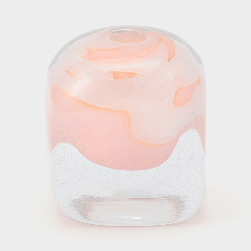 製品本来の用途以外にはご使用にならないでください。強い衝撃や急激な温度変化はヒビ・カケや破損の原因となりますのでお避け下さい。万一、ヒビ・カケが入った場合は安全の為、ご使用をお止めください。ヒビ・カケが入った場合や破損した場合は、破片などで怪我をしないように充分にご注意ください。ガラスは“割れ物”です。極稀に衝撃や温度変化を与えなくても突然割れてしまうことがあります。どんなガラス製品を扱うときも、キズを付けないようにやさしく扱ってください。収れん火災にご注意ください。活け口が小さく、深さは浅めなので、短い丈の植物を活けるのに最適。