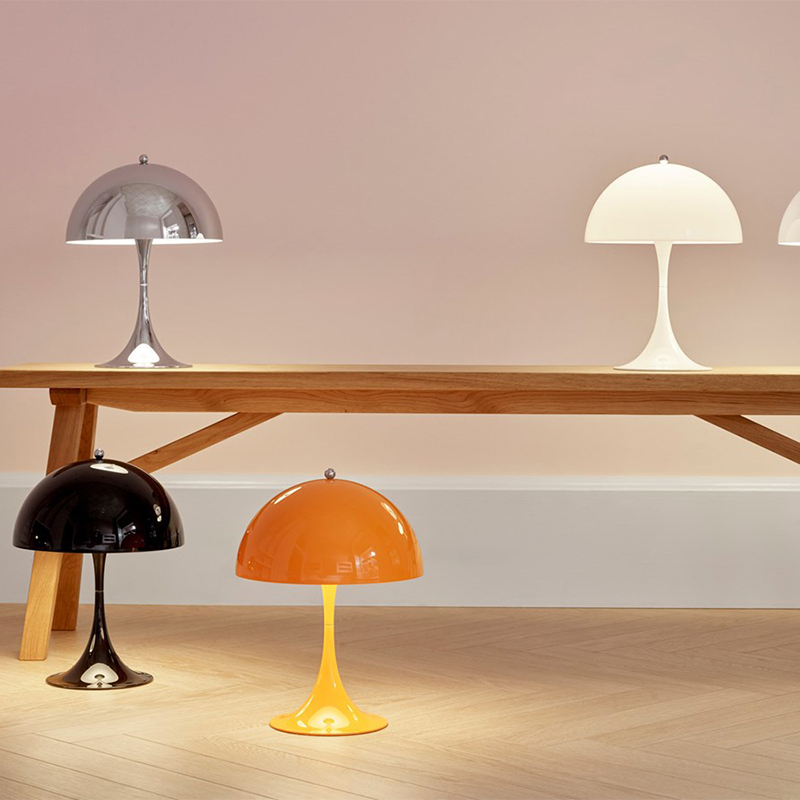 1971年にヴァーナー・パントンが設計して以来のロングセラーのパンテラ ミニは、パンテラ テーブル 400のミニ バージョンです。デザイナーであるヴェルナー・パントンは、シェードとベース部分両方にリフレクター(光の反射板)としての機能を持たせ、彼独自の有機的フォルムに結晶させました。グレアのない光を放つパンテラ ミニ テーブルは、照明が醸しだす雰囲気を追求したパントンの鋭い感性を示す好例です。直径25cmと小ぶりなため、窓辺や棚、テーブルなど限られたスペースにも適したサイズです。