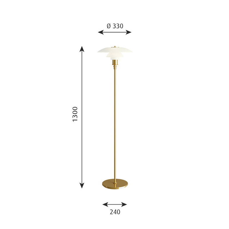 PH 3 1/2 -2 1/2 フロアライトは、1920年代Poul Henningsenによって開発された革新的な3シェードシステムとなっています。