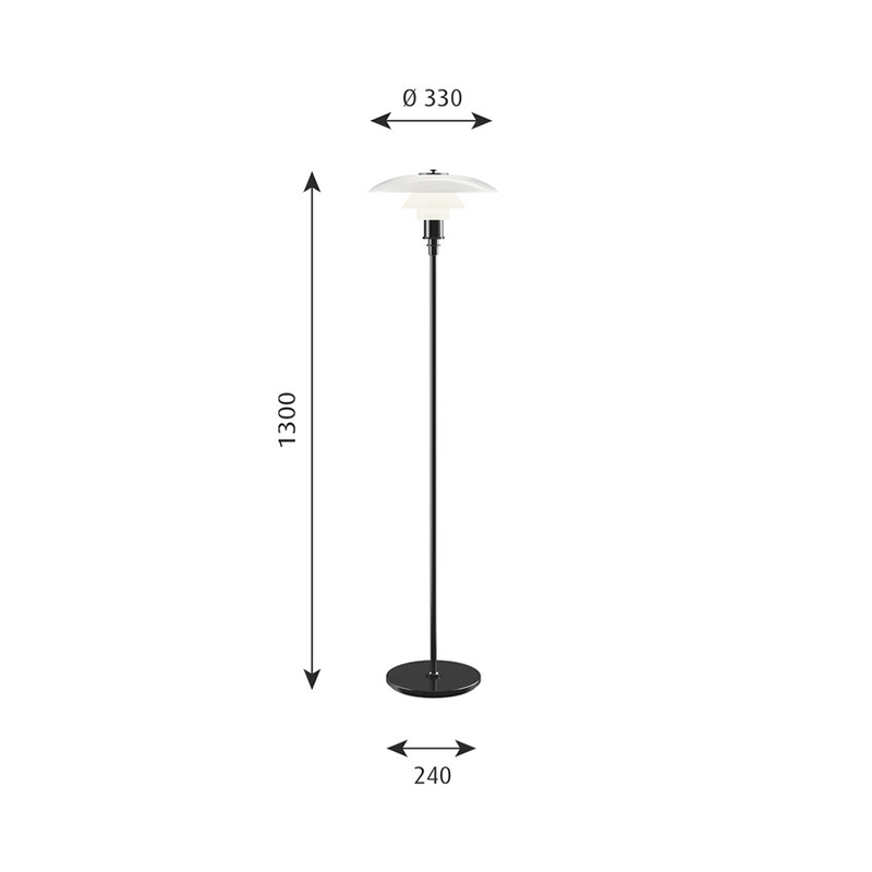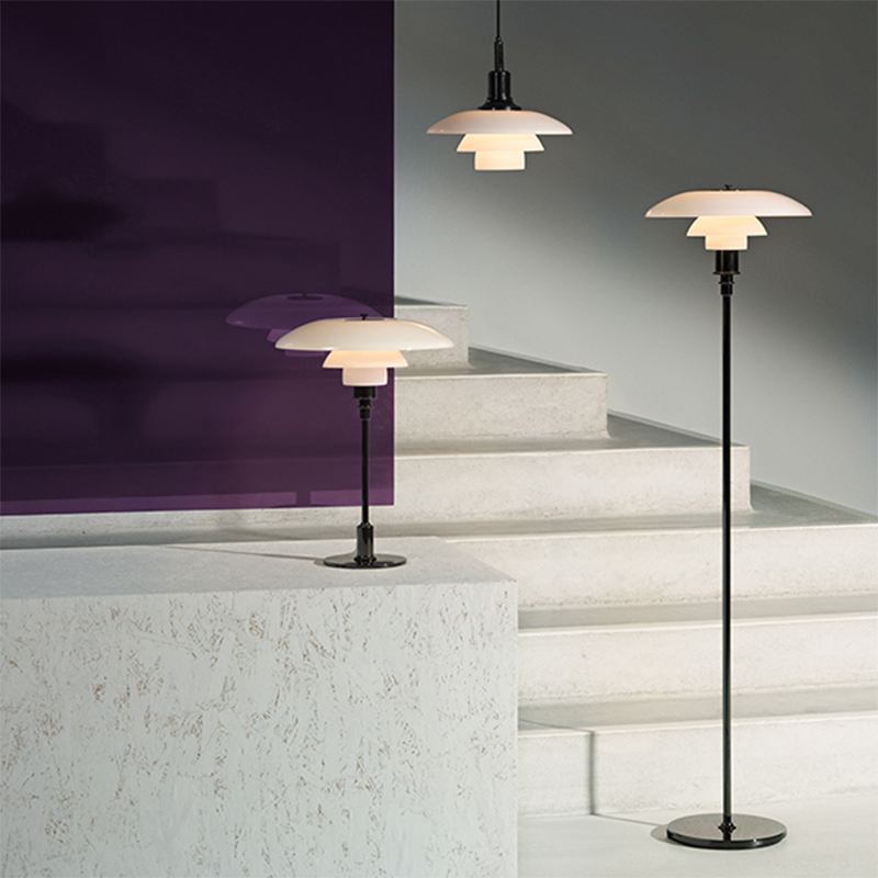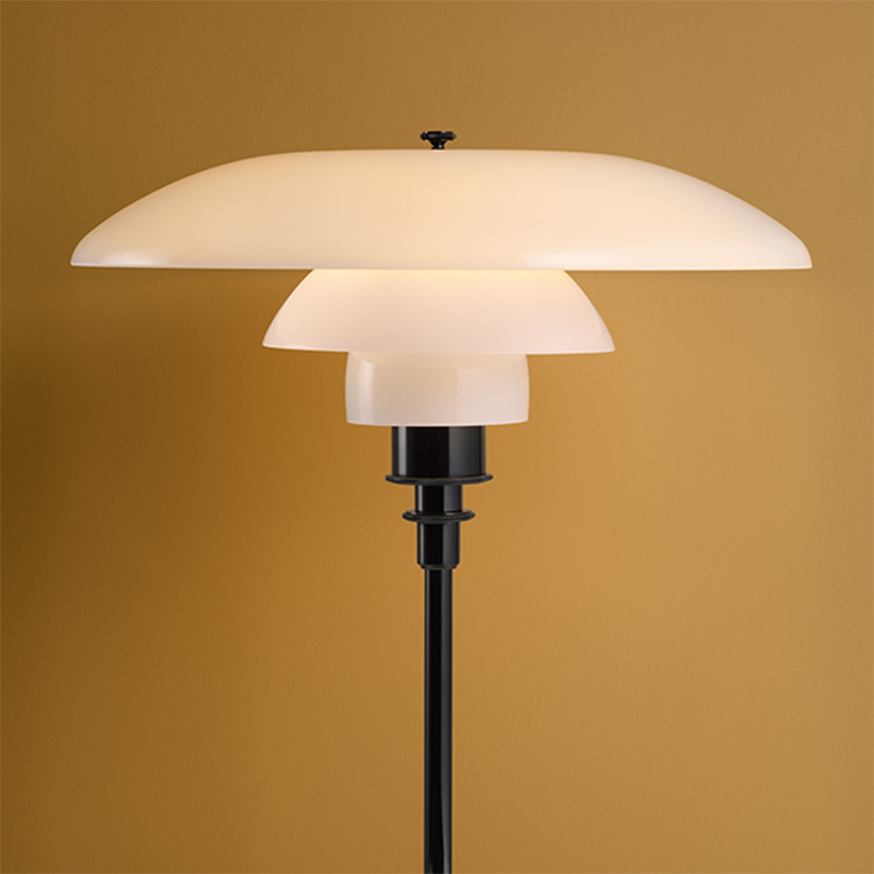 PH 3 1/2 -2 1/2 フロアライトは、1920年代Poul Henningsenによって開発された革新的な3シェードシステムとなっています。