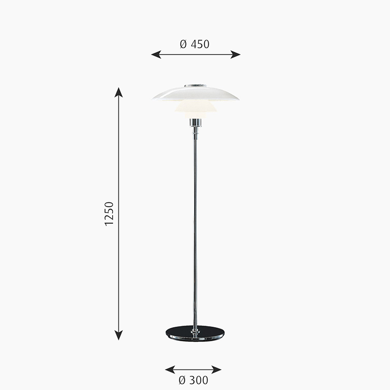 1920年代末のクラシックなPHランプを格調高くリ・デザインしたPH 4 1/2 - 3 1/2 GLASS FLOOR LAMP。