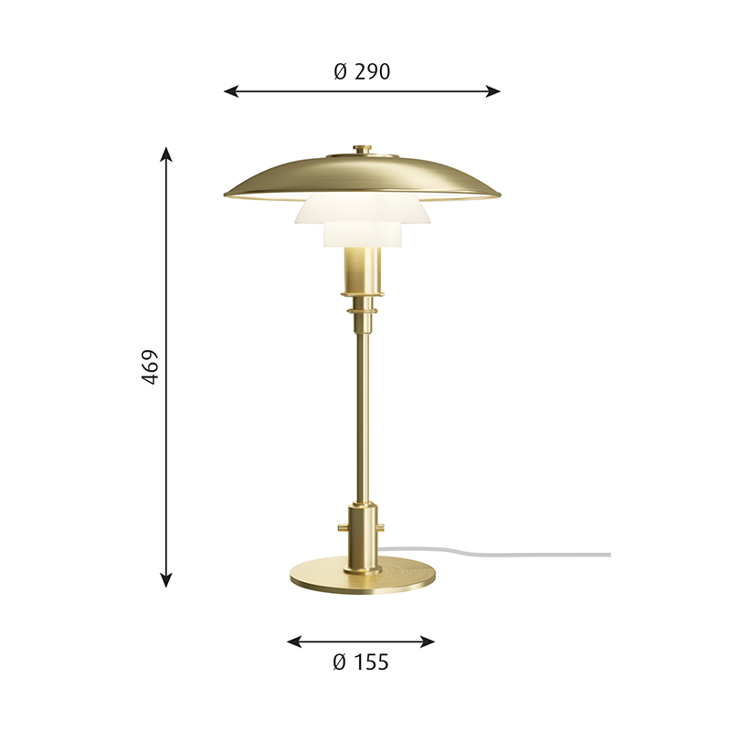 PHランプのモデル番号は、シェードのサイズを表しており、PH 3/2は、直径約30cmのトップ・シェードに、 2/2 モデルのミドル+下部シェードのセットを組み合わせています。