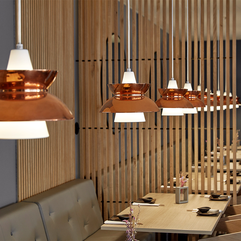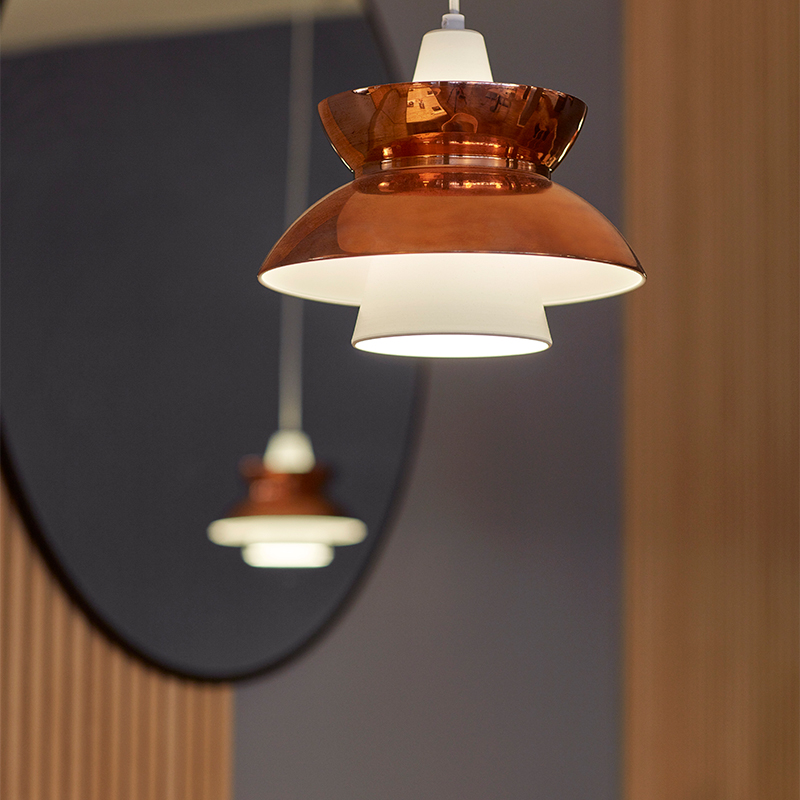 『ドゥー・ワップ』は最初、1950年代に発表されました。デンマーク海軍施設局とルイスポールセンのコラボレーションによるデザインで、海軍のさまざまな建物の食堂やオフィスなど、多くの場所で長年にわたり使用されました。当時ネイビー ペンダントと呼ばれたこの照明は、その特徴的な光と機能性によって広く用いられました。
