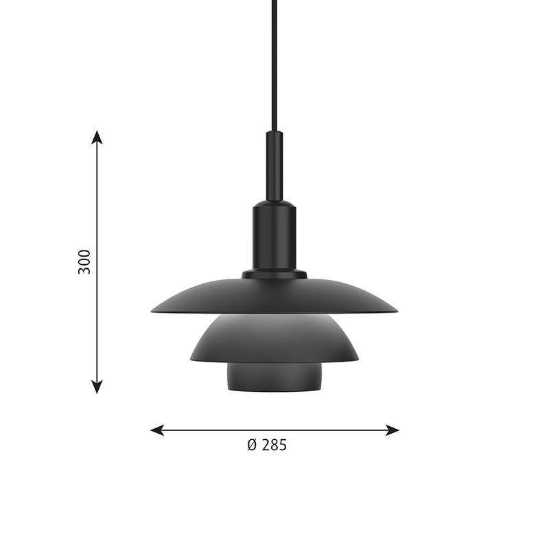 「ホールナンバー」タイプでは、3枚のシェードの直径比率は、3 : 2 : 1となります。「ホールナンバー」タイプは、通常のPHシリーズと比べ2枚目と3枚目のシェードの広がり角度が大きく、下方の広いエリアに光を反射するため、高く吊るすのにも適しています。(注:しかし、トップシェードが金属の場合は、上への光を遮るので、壁面の高い部分や天井面には光を届けません。家庭で高く吊る場合は、単独ではなく、上方への光を補う他のランプと組み合わせると、美しい光のバランスが得られます。)