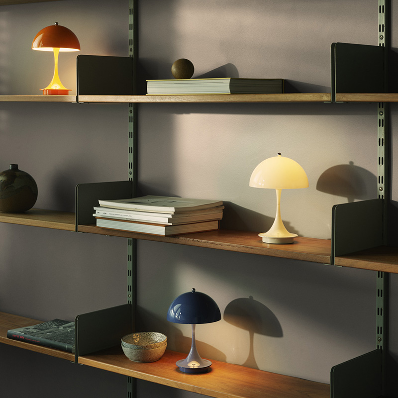 パンテラ160ポータブルは、ヴァーナー・パントンのクラシックなデザインを持ち運びできるように小型化したもので、シェードの直径はわずか160mm。家庭やその他どんなロケーションでも、あらゆる場所で使えます。
