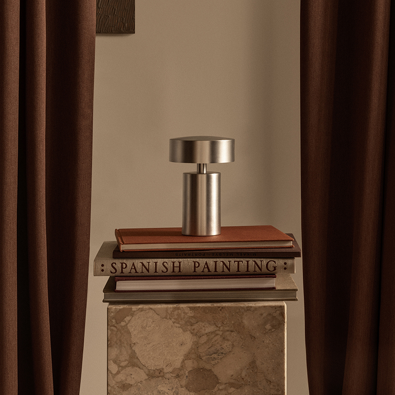 船を桟橋に固定するための”ボラード”にインスパイアされた形状を持つ充電式の Column ポータブルランプ は、テクノロジーと雰囲気作りのスタイルを融合させた印象的なマッシュルーム型のデザインです。