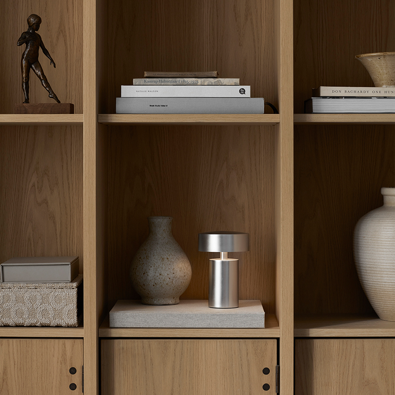 高品質な素材と緻密なディテールにより、人と空間、人と人をつなぐデザインを提案。自由な組み合わせで個性あるインテリアを生み出し、グローバルなコミュニティの創出を目指しています。船を桟橋に固定するための”ボラード”にインスパイアされた形状を持つ充電式の Column ポータブルランプ は、テクノロジーと雰囲気作りのスタイルを融合させた印象的なマッシュルーム型のデザインです。