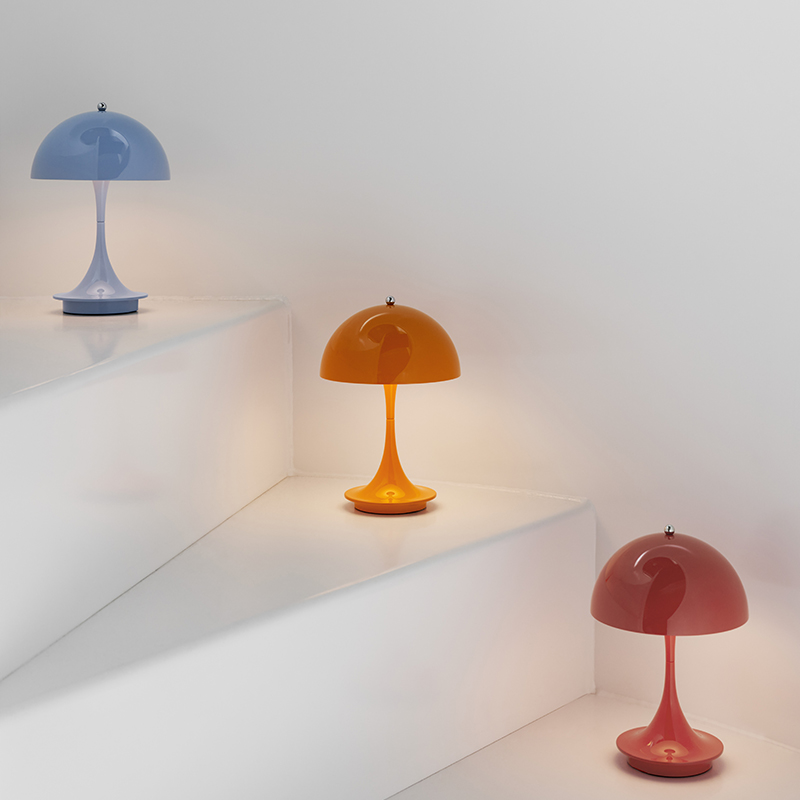 ※USBコードで充電でき、耐久性のある交換可能なバッテリーで長時間使用できます。ヴァーナー・パントンは1971年、ルイスポールセンとの共同開発によりパンテラを発表しました。