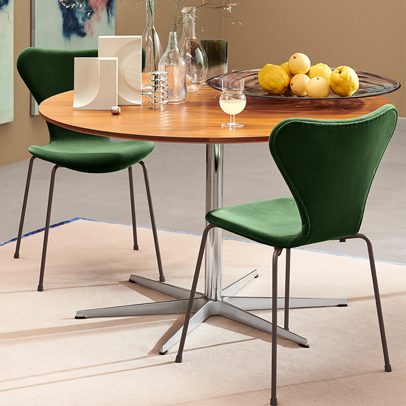 フルパディング仕様のセブンチェアがソフトなイタリア製ベルベットに包まれ、より美しく華やかになりました。
