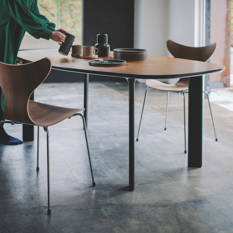 たとえテーブルのコーナーであっても座ることができるよう考慮した、機能とデザインが両立するダイニングテーブルです。