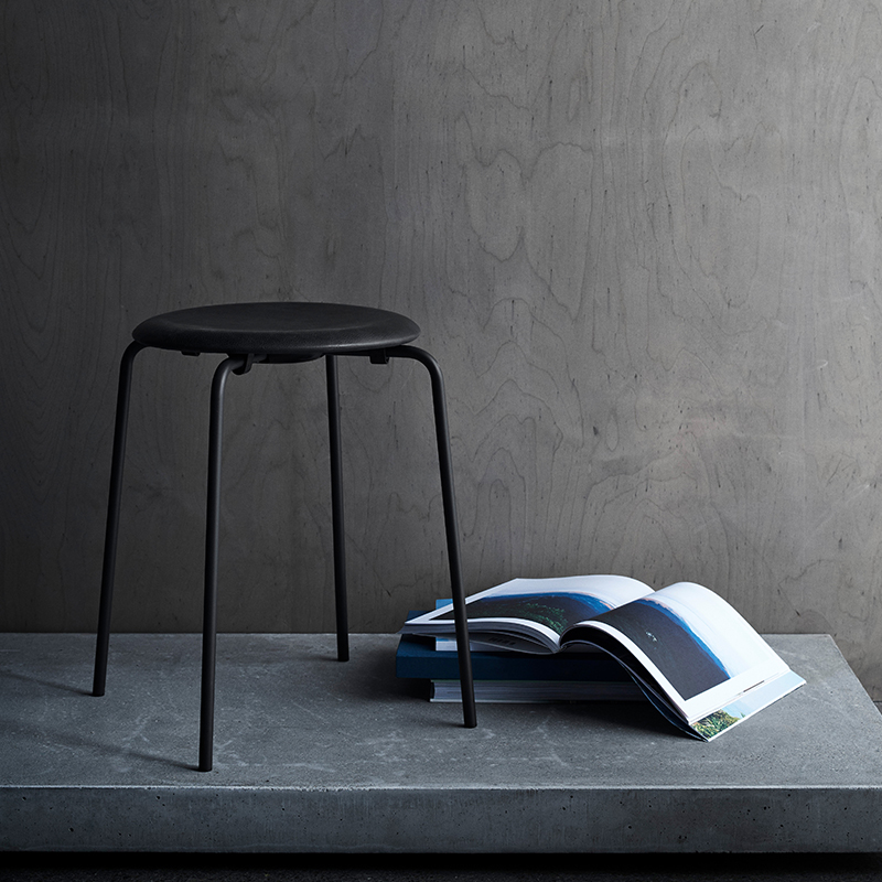 モダンでミニマルな洗練されたデザインのドットスツールは、アルネ・ヤコブセンのいくつもの重要なプロジェクトで使用されました。