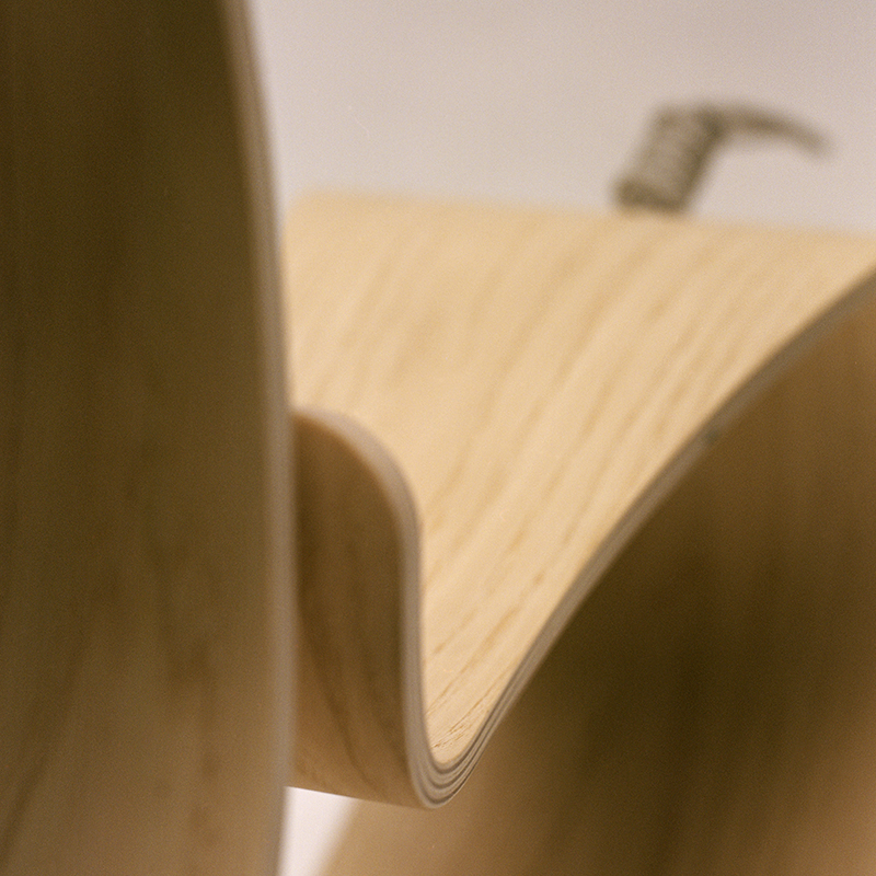 成形合板技術の可能性を広げたいというフリッツ・ハンセンの想いから生まれ、1946年の初期試作の写真をもとに制作されました。技術の限界に挑み続けた先駆的な職人たちへのオマージュとして、現代によみがえります。