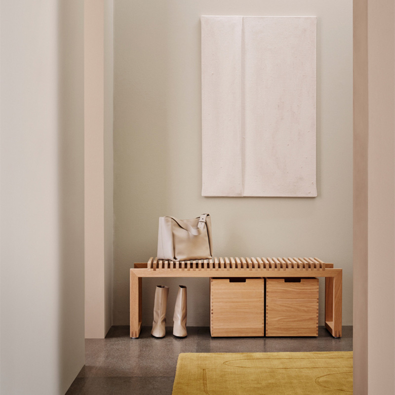 ドイツのバウハウスデザインから得たインスピレーションと、スラットのあるシートと揃いのフレームというアイデアから生まれたカッターベンチ。無駄を削ぎ落としたミニマルなデザインがエフォートレスなオーラを放つ一方で、モダンなデザインがあらゆる空間を美しく引き立てます。