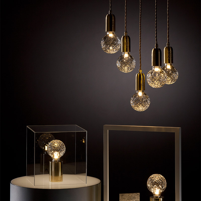 クリスタルバルブは、繊細なクリスタルの切子技法とクラシックな電球のシルエットを融合させたデザインが特徴です。