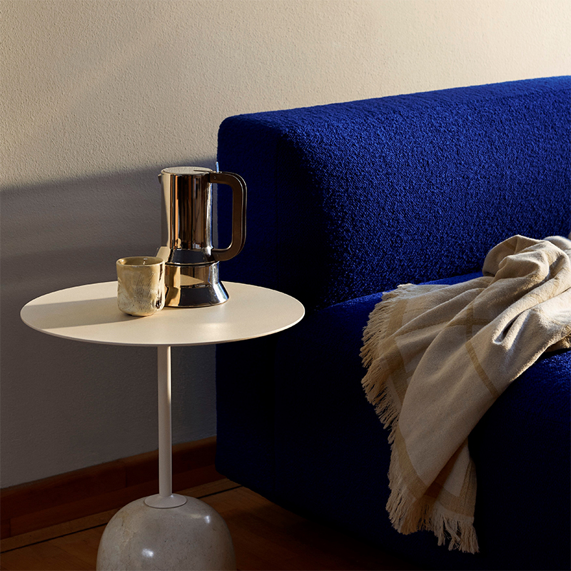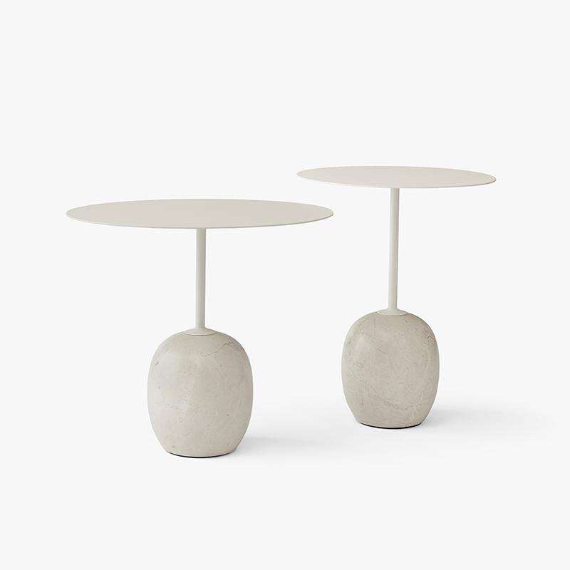 イタリア人デザイナーLuca Nichetto(ルカ・ニチェット)によるデザインの「ラト テーブル」。逆さにしたロリポップキャンディーから着想を得てデザインされました。デザイナーのルカが生まれたイタリアのムラーノ島の職人たちのノウハウが、大理石とスチールの接合部分に活かされています。スリムな楕円形のテーブルトップと楕円形のベースがバランスよく配置されています。自然の色や素材にこだわるルカらしいデザインで、ベースの大理石は自然が生み出す柄が美しく、1点ごとに個性がある点も魅力のひとつです。