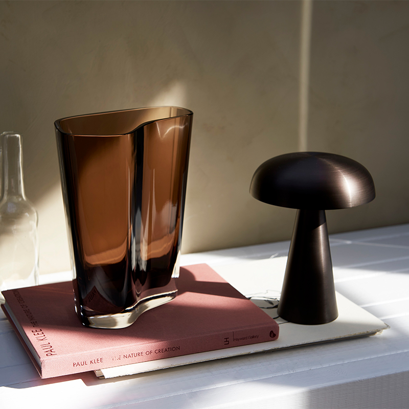 アルミニウムで作られた円錐形のベースが柔らかなカーブを描くマッシュルーム型のシェードに向かって細くなっているのが特徴で、リビングシーンやダイニングシーン、その他ホテルやレストランまで、インテリアにクールでコンテンポラリーなエッジを与えてくれます。