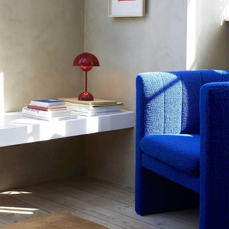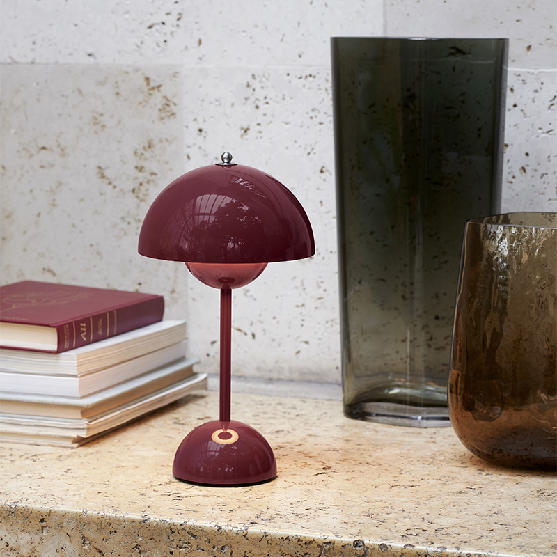 ポータブルランプであるVP9は、フラワーポットのテーブルランプタイプよりも少し小さく、意図的に軽量に設計され、電源はUSB充電ケーブルを採用しています。