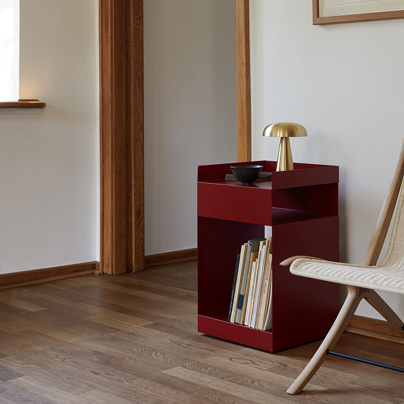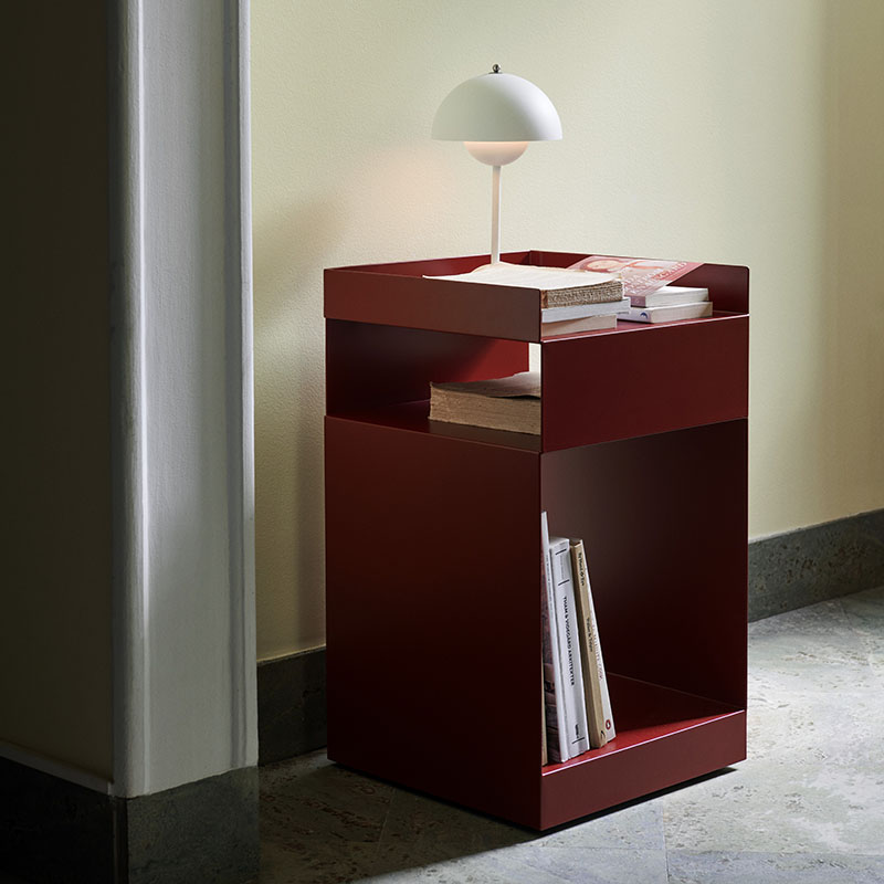 折り紙から着想を得た、多機能なトロリー。様々な用途に対応できるよう非対称にデザインされ、オフィスからベッドサイド、バスルームまで、様々な空間に溶け込みます。
