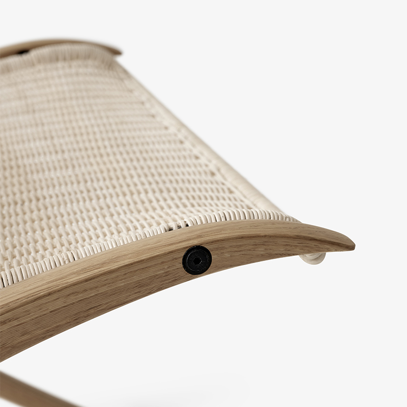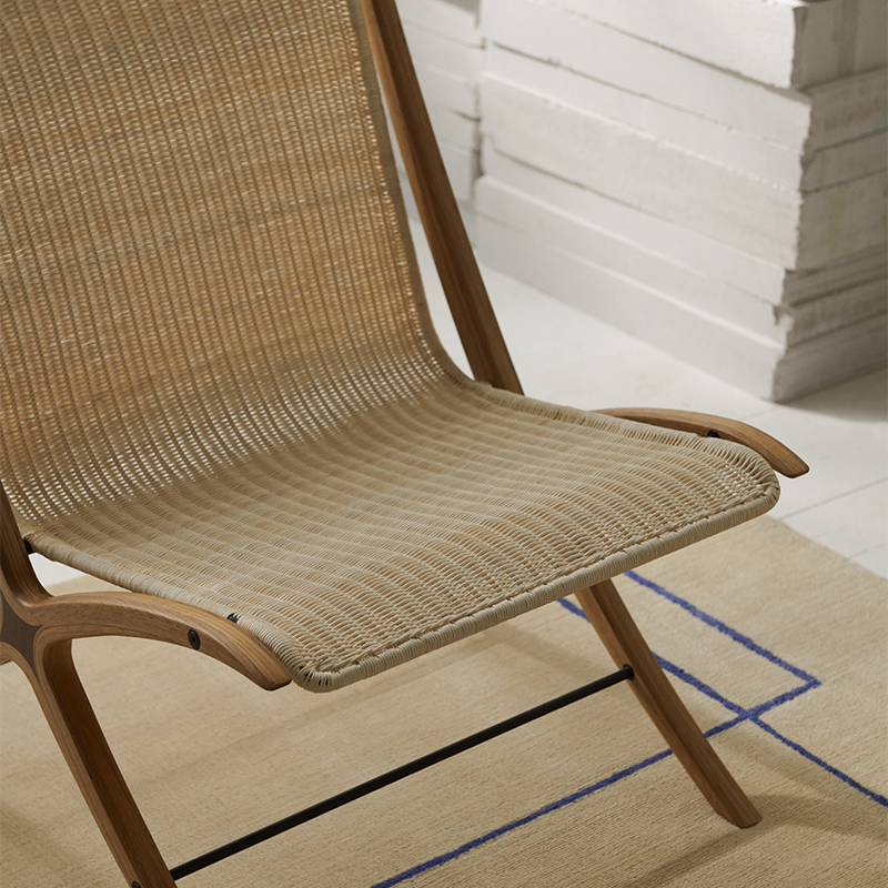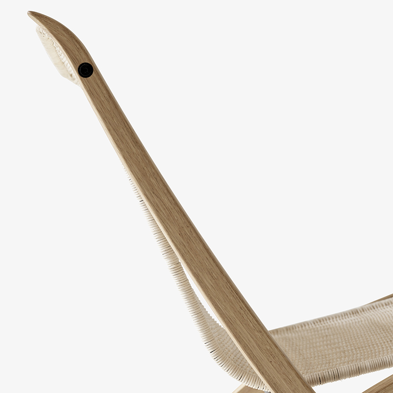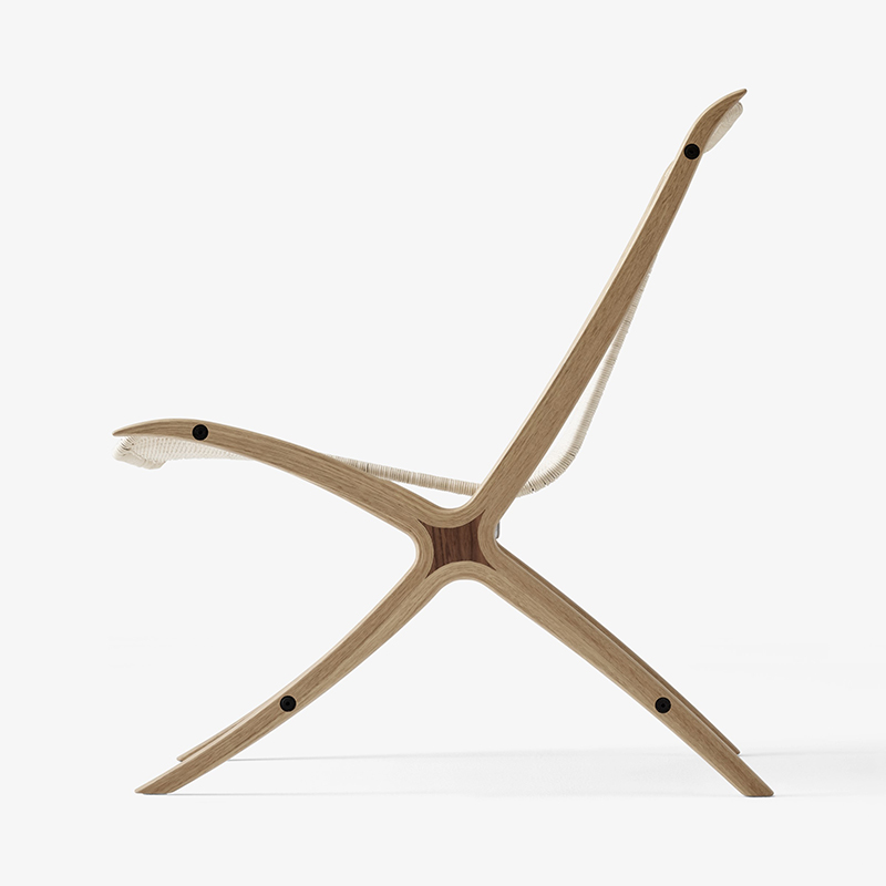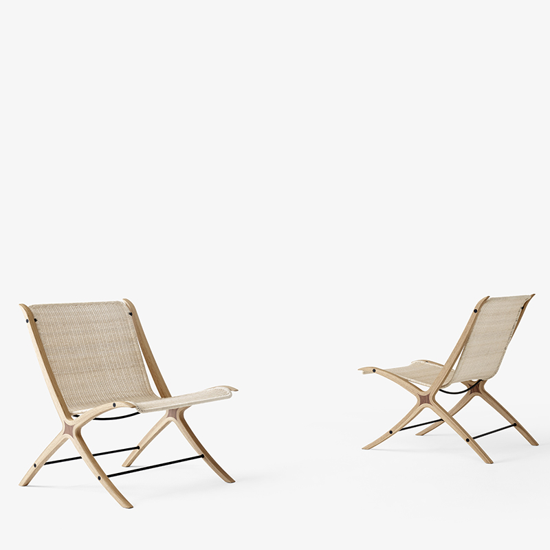 デンマークのデザインデュオ、ビット&ミュルーゴは、古い木製テニスラケットからインスピレーションを得た積層木枠を何年も試した後、1959年に独特の傾斜したシルエットと控えめな美しさを持つラウンジチェア「X」を発表しました。