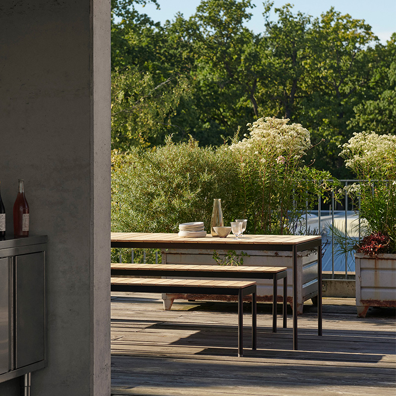 Anderssen & Vollのアウトドアコレクション「ヴィレ」は、自然と素材感を称え、堅牢さと柔らかさを合わせ持つ屋外リビングを演出します。