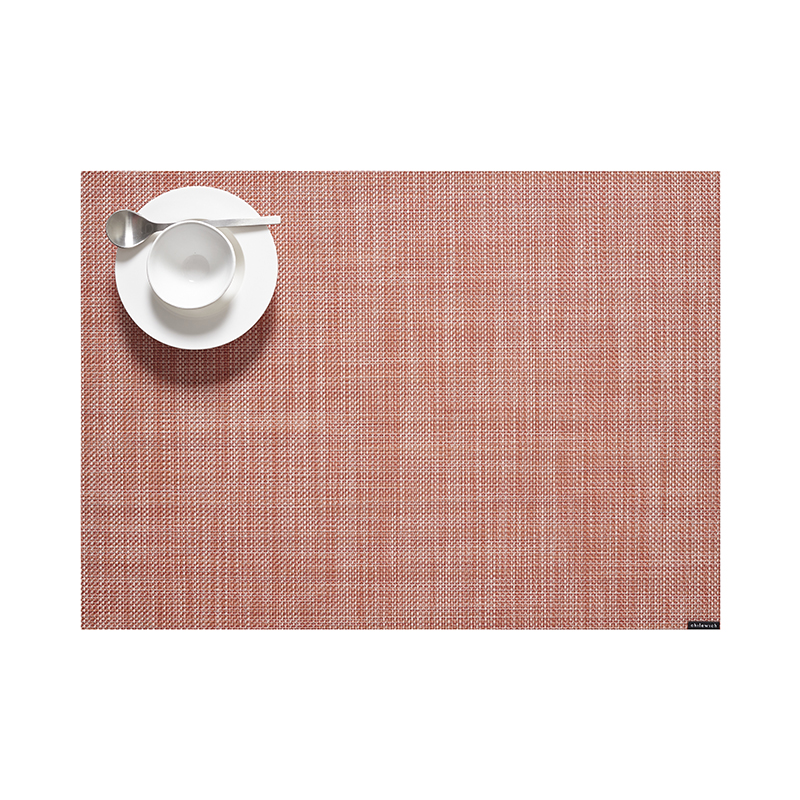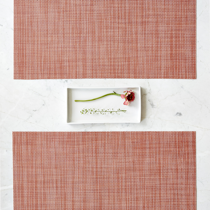 Mini Basketweaveは織り目が細かくシンプルな平織りにバイカラーヤーンの巧みな配色が魅力です。2022年春夏の新色のClayは鮮やかなレッドのバイカラーで、食卓を華やかに演出します。お手入れしやすい塩化ビニルを使用しており飲み物や食べ物をこぼしても繊維に染み込む心配がなく、デイリーにお使いいただけます。