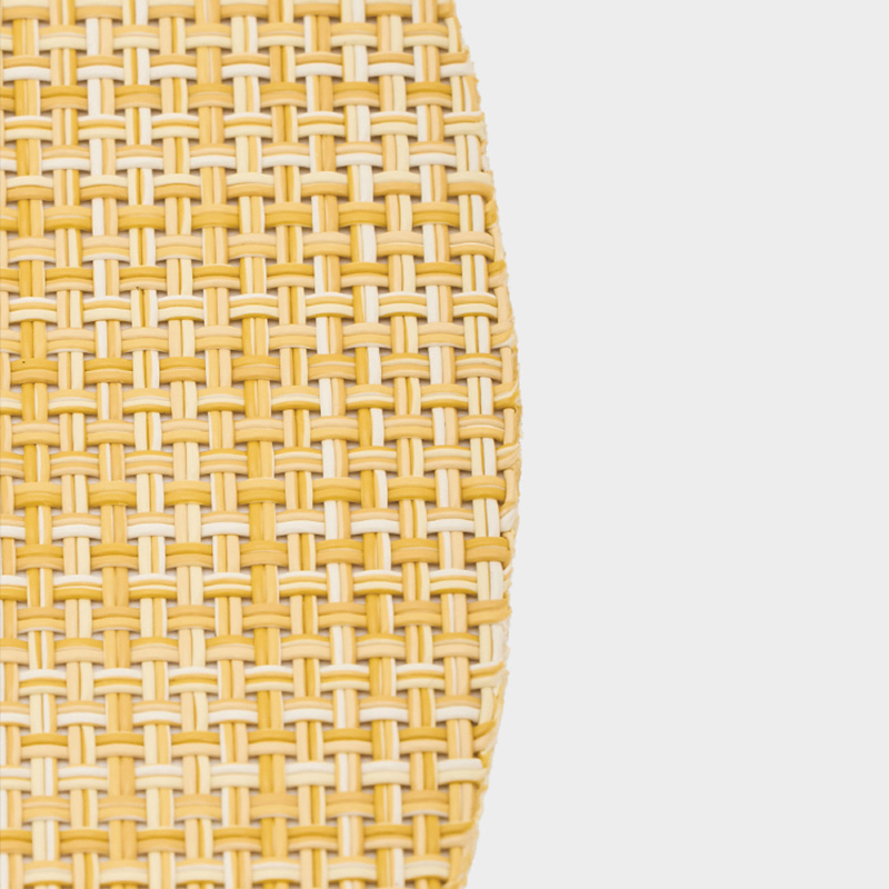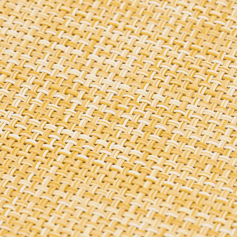 1本の糸に複数の色を使う「バイカラー」を駆使し、柄ごとに糸を開発。2000年に世界で初めて、塩化ビニル素材のプレイスマットを開発し、世界中で大きな反響となり、以降、年2回の新コレクションを発表し、デザイン賞を多数受賞しています。ニューヨークを拠点に活躍するデザイナー Sandy Chilewich(サンディー・チルウィッチ)によるプレイスマット。