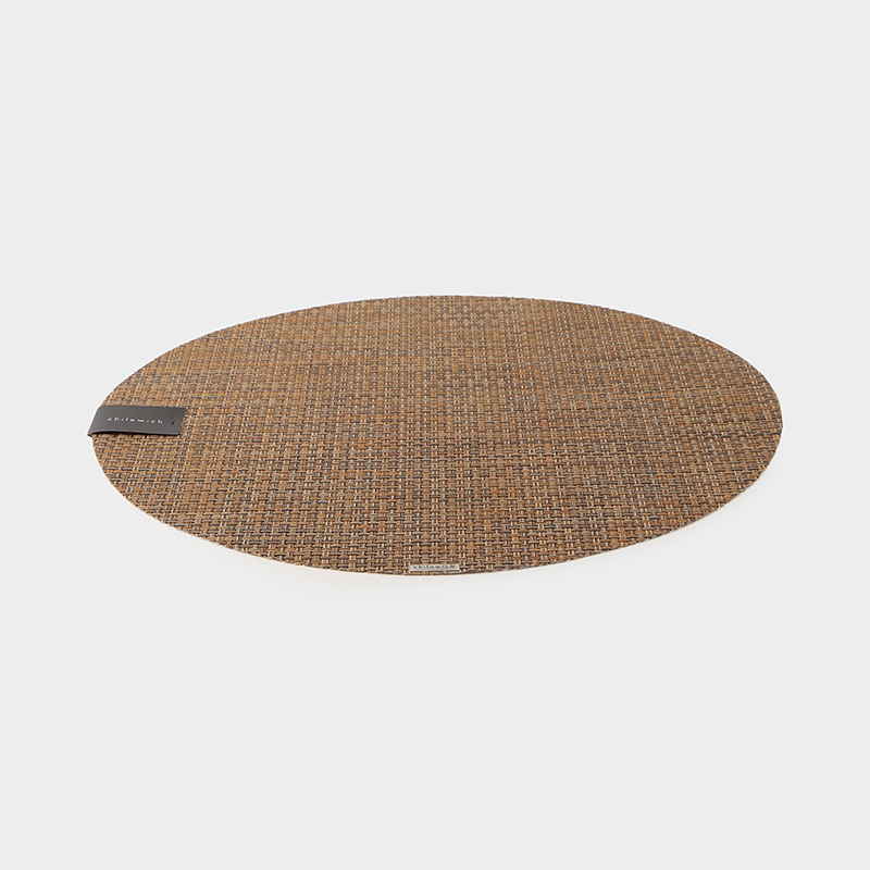 バスケットウィーブ ラウンド チークは、その名の由来である広葉樹のチークの自然美とゴールデンブラウンの色調を組み合わせました。シンプルなバスケット織りで、チルウィッチにしかできない独自の色彩観を表現しています。ラウンドタイプは小ぶりなテーブルにも使いやすいサイズ感です。