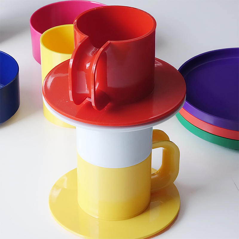 イタリアのグラフィックデザイナー、マッシモ・ヴィネッリがデザインした積み重ね可能なプラスチック製の食器で、1964年にアメリカで発売された際、毎日の生活をより楽しくする遊び心あふれる製品として、瞬く間にヒットしました。