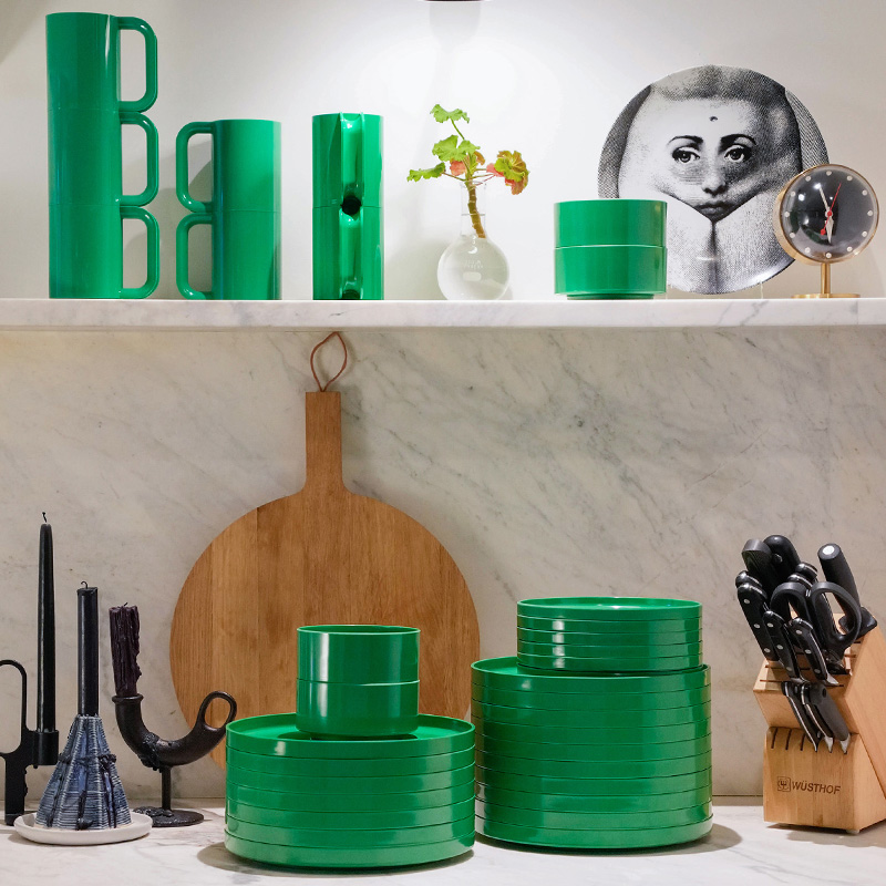 安っぽいとされていたプラスチックの可能性の限界を押し広げ、美しく、機能的で、耐久性に優れた画期的なHeller Dinnerwareは、Compasso d'Oroを受賞し、ニューヨーク近代美術館(MoMA)やメトロポリタン美術館に永久収蔵されています。そして、2024年にリバイブルされました。